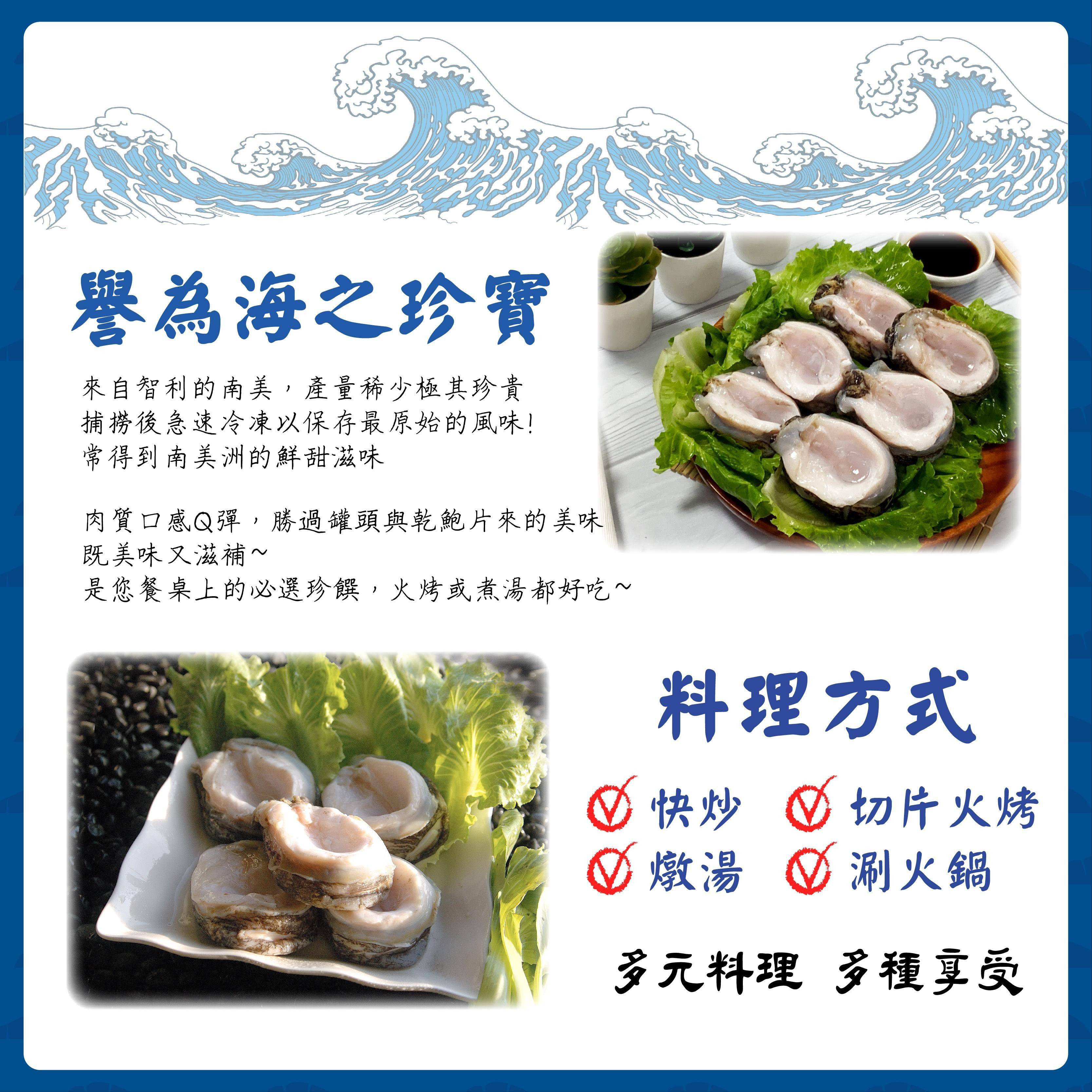 ✔智利南美貝保持鮮美原味,遠比罐頭與乾鮑片來的鮮美。